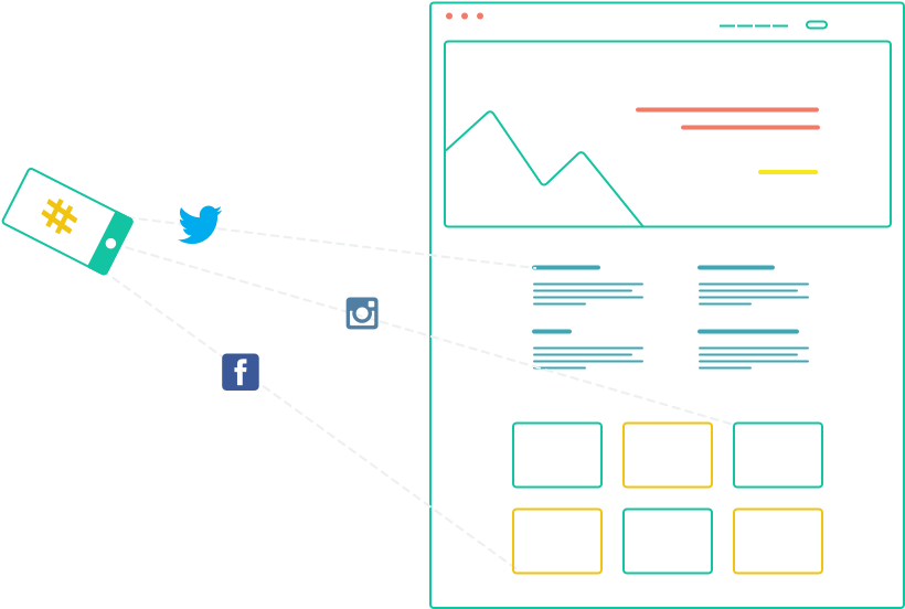 Hashtags from one of your social media profiles control which content goes where on your website or displays.